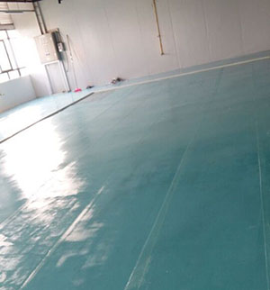 批涂層主要采用面涂材料配石英細(xì)粉批涂,施工必須在30分鐘內(nèi)完成。批涂層涂布必須平整,無孔、批刀痕和打磨痕跡。待涂層完全固化后, 用無塵研磨機(jī)研磨地面,然后用真空吸塵器吸收灰塵。