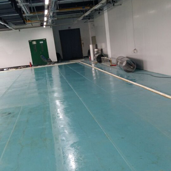 3.自流平水泥干燥后、地面簡(jiǎn)易處理,施工環(huán)氧底漆