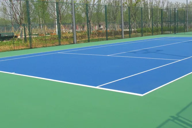 3.第三層是面料涂層:用丙烯酸面層涂料加石英砂和稀釋劑混合攪勻后滿刮場(chǎng)地二遍;