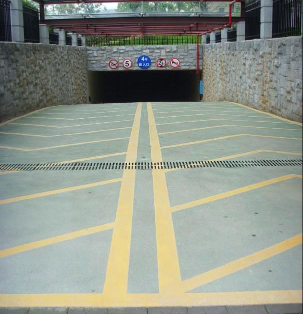 停車場(chǎng)地坪是要求耐磨性強(qiáng),耐高強(qiáng)度沖擊性,高荷載的汽車行駛區(qū)域,因車在行走時(shí)與車道的摩擦力非常大,且車的沖擊力大,因此車道、車位一般采用環(huán)氧樹脂地坪涂裝系統(tǒng)。