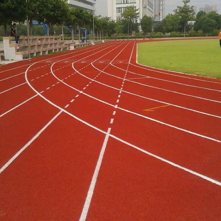 混合塑膠跑道:常用PU和黑色橡膠顆粒按比例混合常溫硫化成型,有一定的標(biāo)準(zhǔn),在比賽場(chǎng)地常用。