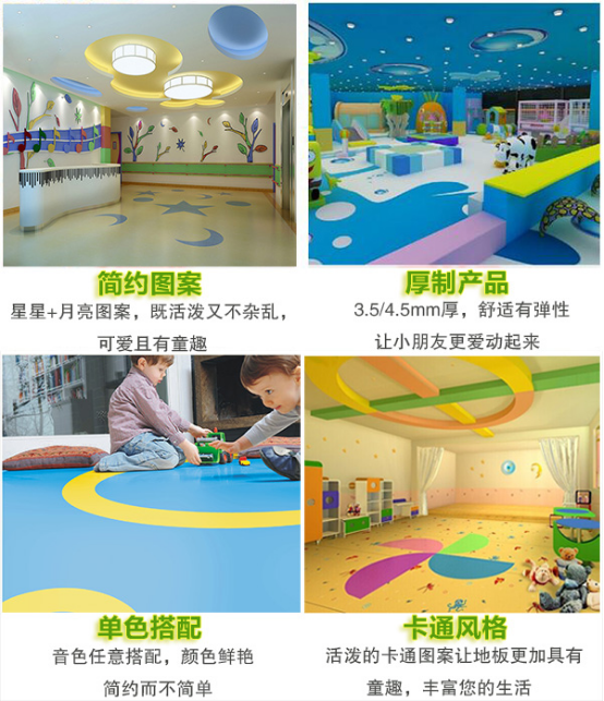 1、3.5mm光面幼兒園/舞蹈房地膠環(huán)保原材料生產(chǎn),不含任何有害物質(zhì),營造一個真正綠色環(huán)保的空間