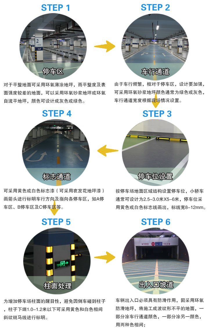 停車場(chǎng)地坪依據(jù)客戶的需要,設(shè)計(jì)不同的地坪類型:目前較高級(jí)的車庫(kù)類型是目前比較好的環(huán)氧地坪車庫(kù),它的色彩鮮艷,無(wú)縫,防塵,美觀,標(biāo)識(shí)明確,讓你耳目一新,現(xiàn)在很多商場(chǎng)的車庫(kù),小區(qū)都是這種類型,和高檔的場(chǎng)所拼在一起,更感覺(jué)高大上,環(huán)氧地坪要好好的養(yǎng)護(hù),高貴類型的。
